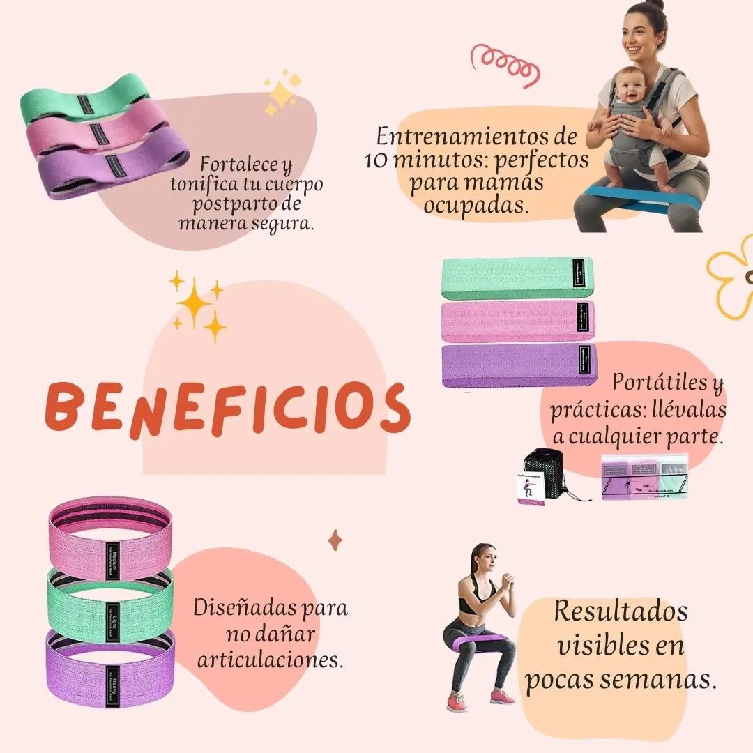 ✅ Incluye 3 bandas de diferentes resistencias + bolsita para guardarlas.